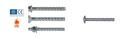 • Ancorante a vite in acciaio con dop-pia filettatura sulla lunghezza e zi-grinatura autobloccante sotto testa, per posa diretta su calcestruzzo